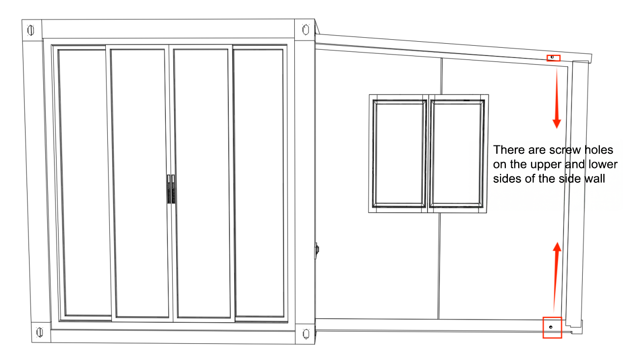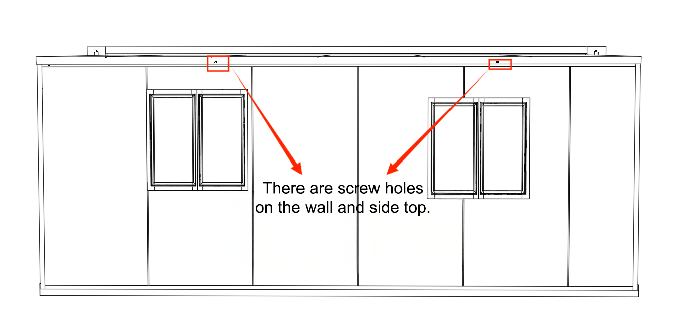 Large Walls and Roof: Screw holes are present at designated positions on the left and right sides.