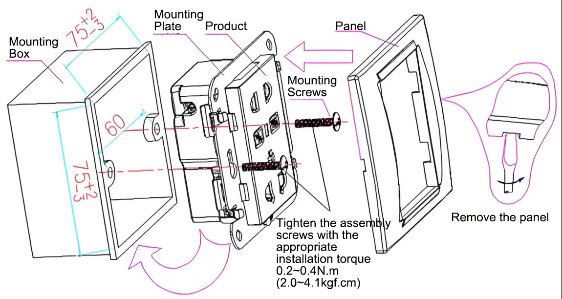 3. Insert the installation panel into the socket box and secure it using installation screws.